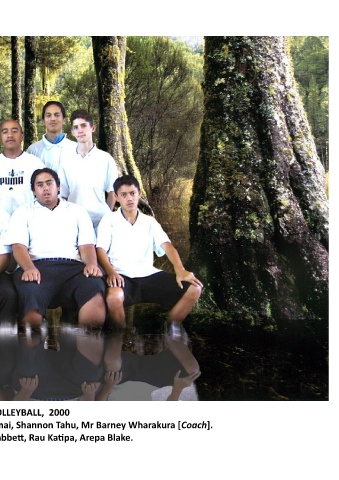 YEAR 11 BOYS VOLLEYBALL, 2000 Kawhena Moeke, Isaac Huirama, Basalay Tumai, Shannon Tahu, Mr Barney Wharakura [Coach]. Danny Tahu, Gregory Mabbett, Rau Katipa, Arepa Blake.