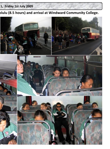 Leaving Ngaruawahia for Auckland Airport, the flight to Honolulu (8.5 hours) and arrival at Windward Community College.